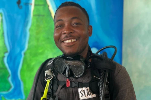 Originario del Monte Kilimanjaro, Azizi decidió cambiar el frío por las cálidas aguas de Zanzibar, hasta convertirse en Divemaster. Joven y con una energía infinita, será el primero en estar listo para bucear!